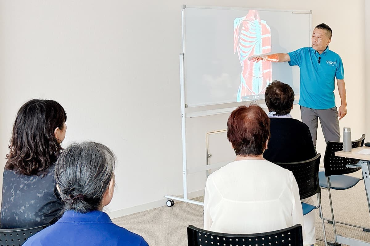 各クライアントの体の状態や痛みの原因を見立て、それに応じた体操プログラムを作る方法を学びます。一人ひとりの状態に合わせ、最適なメニューを柔軟に提供できる力が身につきます。